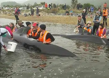 WELLINGTON, New Zealand, February 12, 2017 (ENS) – Hundreds of pilot whales stranded and died on the northern tip of New Zealand’s South Island this weekend; others in that group were refloated, but then hundreds more beached themselves Saturday.