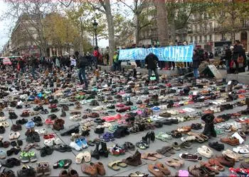 Instead, 22,000 pairs of shoes, including those of Pope Francis and UN Secretary General Ban Ki-moon, were placed at Place de la Republique to symbolize the people who could not march because of the ban.