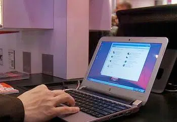 Visitor to the Consumer Electronics Show tries out an HP computer. (Photo by HP) |