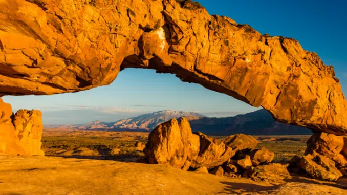 Featured image: A rock arch in Utah’s Grand Staircase-Escalante National Monument faces the setting sun. May 1, 2019 (Photo by Ralph Earlandson)