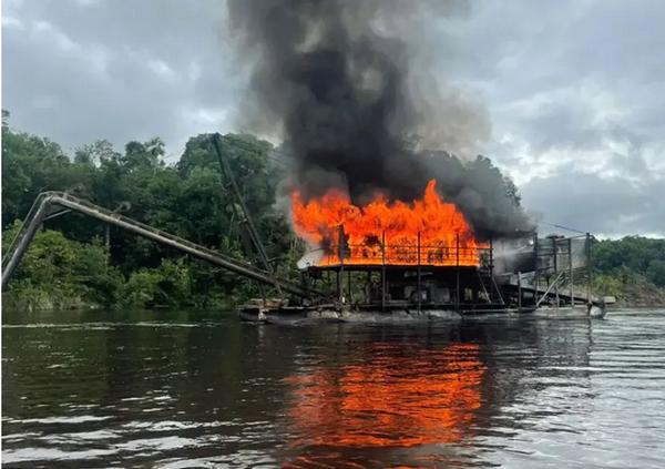 A joint operation in May 2023 along remote rivers in the Brazilian state of Amazonas, near the border with Colombia, resulted in the burning of at least 29 dredges. Videos circulating in miners’ WhatsApp groups showed equipment in flames. One source said explosives were used to disable the barges.
