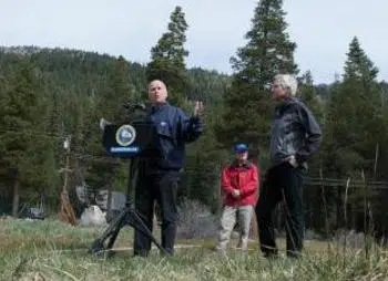 At a news conference at the site of the Sierra-at-Tahoe ski resort in Phillips, California at an elevation of 6,873 feet, Governor Brown said, “Today we are standing on dry grass where there should be five feet of snow. This historic drought demands unprecedented action.”