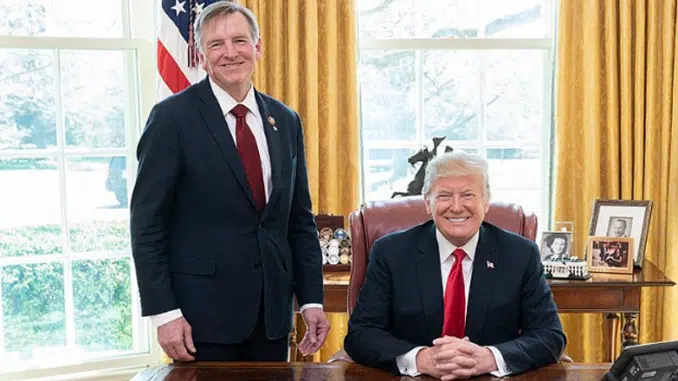 Featured image: Arizona Congressman Paul Gosar, left, and former President Donald Trump in the White House Oval Office, December 13, 2019, Washington, DC (Photo courtesy United States House of Representatives – Office of Paul Gosar)