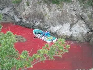 Waters run red from the blood of dolphins in Japan’s Taiji Bay. (Photo courtesy Sea Shepherd Conservation Society)