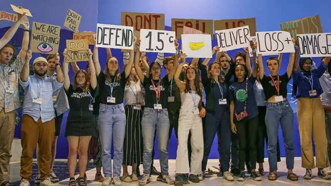 Featured image: Young people stage a demonstration in support of loss and damage reparations by rich countries that are major emitters of greenhouse gases to poorer countries that emit little climate pollution but suffer rising sea levels, fierce hurricanes and other serious climate damages. (Photo by IISD/ENB | Mike Muzurakis)
