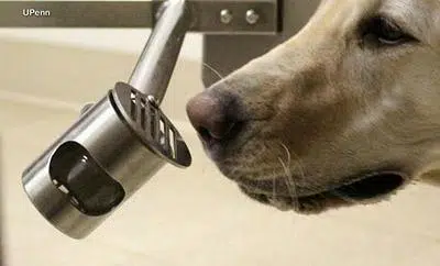 “Scent detection dogs can accurately detect low concentrations of volatile organic compounds, otherwise known as VOCs, associated with various diseases such as ovarian cancer, bacterial infections, and nasal tumors. These VOCs are present in human blood, saliva, urine or breath,” said Cynthia Otto, DVM, PhD, professor of Working Dog Sciences and Sports Medicine and director of Penn Vet’s Working Dog Center.