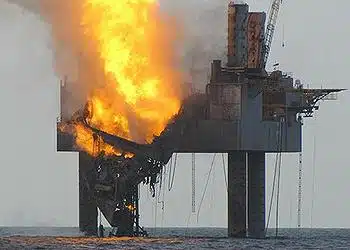 Late Tuesday evening, the natural gas flowing from the well ignited and the flames spread to the rig.