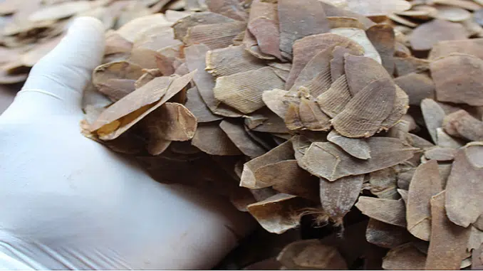 Featured image: White-bellied pangolin scales confiscated by Nigeria Customs Service, 2021. (Photo by Charles Emogor courtesy University of Cambridge)