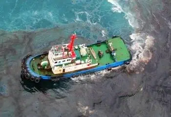 Cleanup workers in white suits are taking oil off the beaches. Seven ships and 12 aircraft are at the scene deploying containment booms and spraying dispersants to dissolve the oil.
