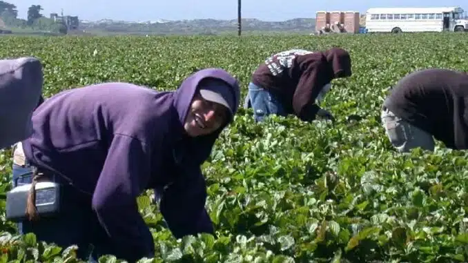 Featured image: Pregnant farmworkers in a California field. (Photo courtesy Migrant Clinicians Network)