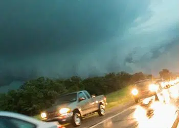 While it was in the tornado warning zone, this time Moore did not suffer a direct hit, only heavy rain and high winds.