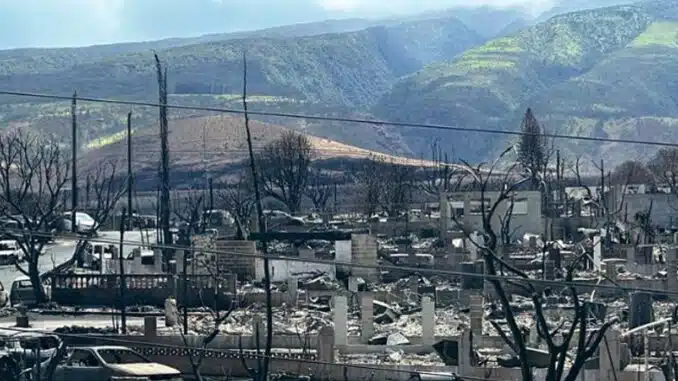 Featured image: The burned-out town of Lahaina, Maui was, until last week, home to about 13,000 people and hosted numerous visitors. August 16, 2023 (Photo courtesy State Farm Insurance)