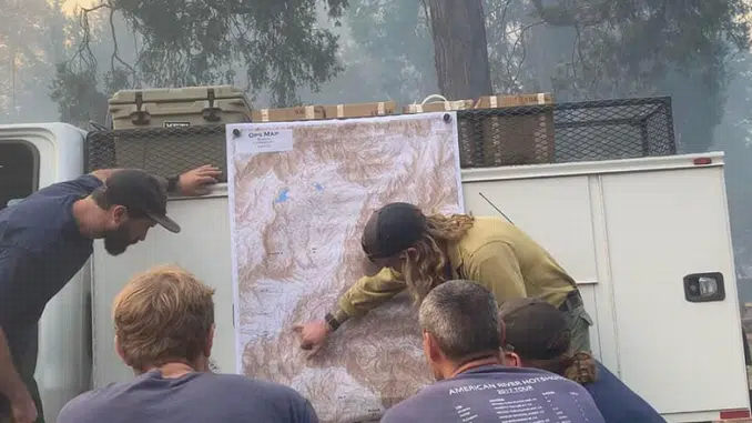 Featured image: The American River hotshot crew on the Tahoe National Forest studies a map of the Mosquito Fire. September 8, 2022 California (Photo by B. Blaine) Hotshot crews work on the most challenging fires. The U.S. Forest Service, National Park Service, Bureau of Land Management, Bureau of Indian Affairs, state and county agencies sponsor more than 100 Interagency Hotshots Crews, most in the western United States.