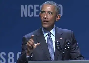 LAS VEGAS, Nevada, August 24, 2015 (ENS) – Banners and screens reading “National Clean Energy Summit 8.0 – Powering Progress” decorated the packed ballroom at the Mandalay Bay Resort Convention Center in Las Vegas today, as President Barack Obama announced new actions to bring renewable energy to households across the country and fight climate change.