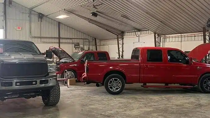 Featured image: A view of a portion of the shop floor at Cincy Diesel Performance, David Owens’ diesel truck engine maintenance and service business, April 1, 2020 (Photo courtesy Cincy Diesel Performance via Facebook)