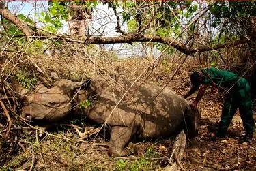 The black rhinos, Diceros bicornis, were reintroduced from South Africa’s Kruger National Park through the Care for the Rare wildlife species program, initially supported by J&B Whisky and several business magnates.