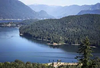 Burnaby Mountain is a low, forested mountain rising 1,214 feet, overlooking the upper arms of Burrard Inlet. It is the location of Simon Fraser University, the Discovery Park research community, and the System Control Tower of BC Hydro and a new complex of residential and commercial development.
