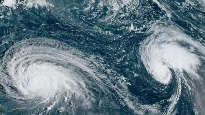 Featured image: Image equipment onboard NOAA’s GOES East satellite captured this image of Hurricane Lee churning over the Atlantic, northeast of Puerto Rico, as well as Tropical Storm Margot farther east, as the sun rose overhead, September 11, 2023, at 7:30 a.m. EDT (Photo courtesy National Oceanic and Atmospheric Administration, NOAA)