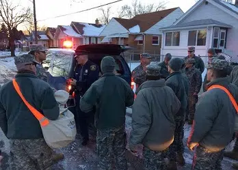 Michigan National Guard members go door to door to deliver water, filters, replacement cartridges and water test kits to residents of Flint, Michigan on January 19, 2016. (Photo by U.S. National Guard Maj. Joe Cannon)