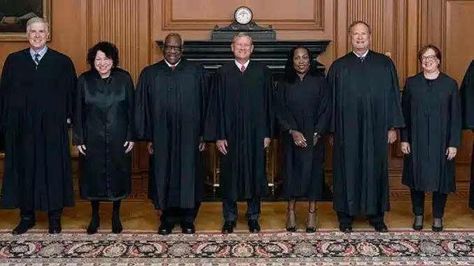 Featured image: The Supreme Court of the United States as of 2024, From left: Associate Justices Amy Coney Barrett, Neil Gorsuch, Sonia Sotomayor and Clarence Thomas, Chief Justice John G. Roberts, Jr. and associate justices Ketanji Brown Jackson, Samuel A. Alito, Jr., Elena Kagan and Brett Kavanaugh