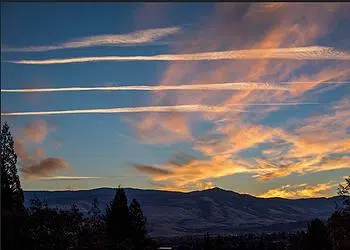 Some groups and individuals allege that the white marks aircraft make across the sky are “chemtrails,” chemicals sprayed secretly either by the government and or by industry and linked to negative impacts on human health and the environment.