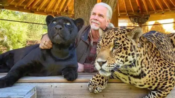 Featured image: Bhagavan “Doc” Antle with a jaguar and a black panther, undated. (Photo courtesy Doc Antle)