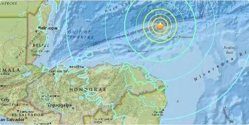The USGS said, “The Great Swan Island, Honduras earthquake occurred as the result of strike slip faulting in the shallow crust near the boundary between the North America and Caribbean plates.”