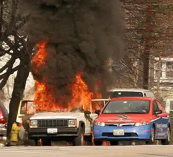 A car on fire in Lombard, Illinois. (Photo by Daveblog) |