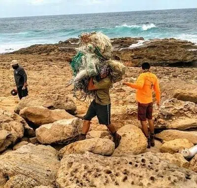 But Mo‘omomi’s beaches are also a “hot spot” where thousands of pounds of marine debris, such as commercial fishing nets and plastic waste, wash in from all over the Pacific Ocean each year.