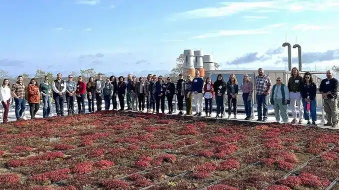 Featured image: The U.S. Environmental Protection Agency, EPA, hosts last year’s annual Regional-ORD Community of Science Networking, or ROCS-Net, event at its Office of Research and Development, ORD, facility in Narragansett, Rhode Island. Participants stand by a green roof that helps manage stormwater runoff and a five-kilowatt photovoltaic solar array that helps offset the lab’s energy use. Participants explored collaborative research opportunities and discussed science priorities with EPA researchers. 2024, precise date not publicly available. (Photo courtesy EPA)