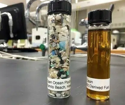 Plastic waste gathered on a North Carolina beach is turned into high-quality burnable oil in a lab at University of North Carolina Wilmington. (Photo courtesy UNCW)