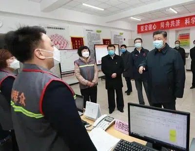 Wearing a mask, Chinese president Xi Jinping visited a residential community, a hospital and a district center for disease control and prevention in Beijing.