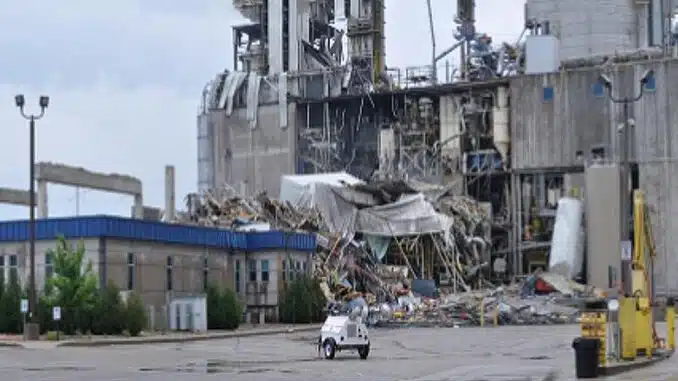 The U.S. Chemical Safety Board, CSB, has determined that the cause of the dust explosions and collapsed buildings was “the ignition of combustible corn dust inside process equipment, which transitioned to multiple explosions.”