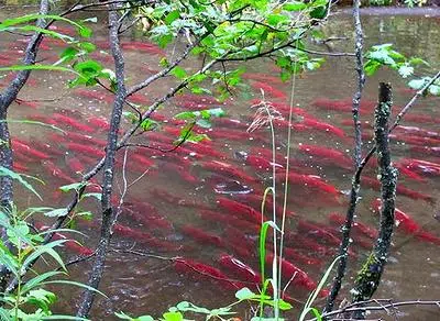 Mine critics point to decades of research that have found Bristol Bay’s productivity is linked to a landscape of many different spawning streams. In a typical year, roughly 40 million salmon turn vast stretches of waterways red as they return from the ocean to spawn in the streams and lakes where they were hatched.